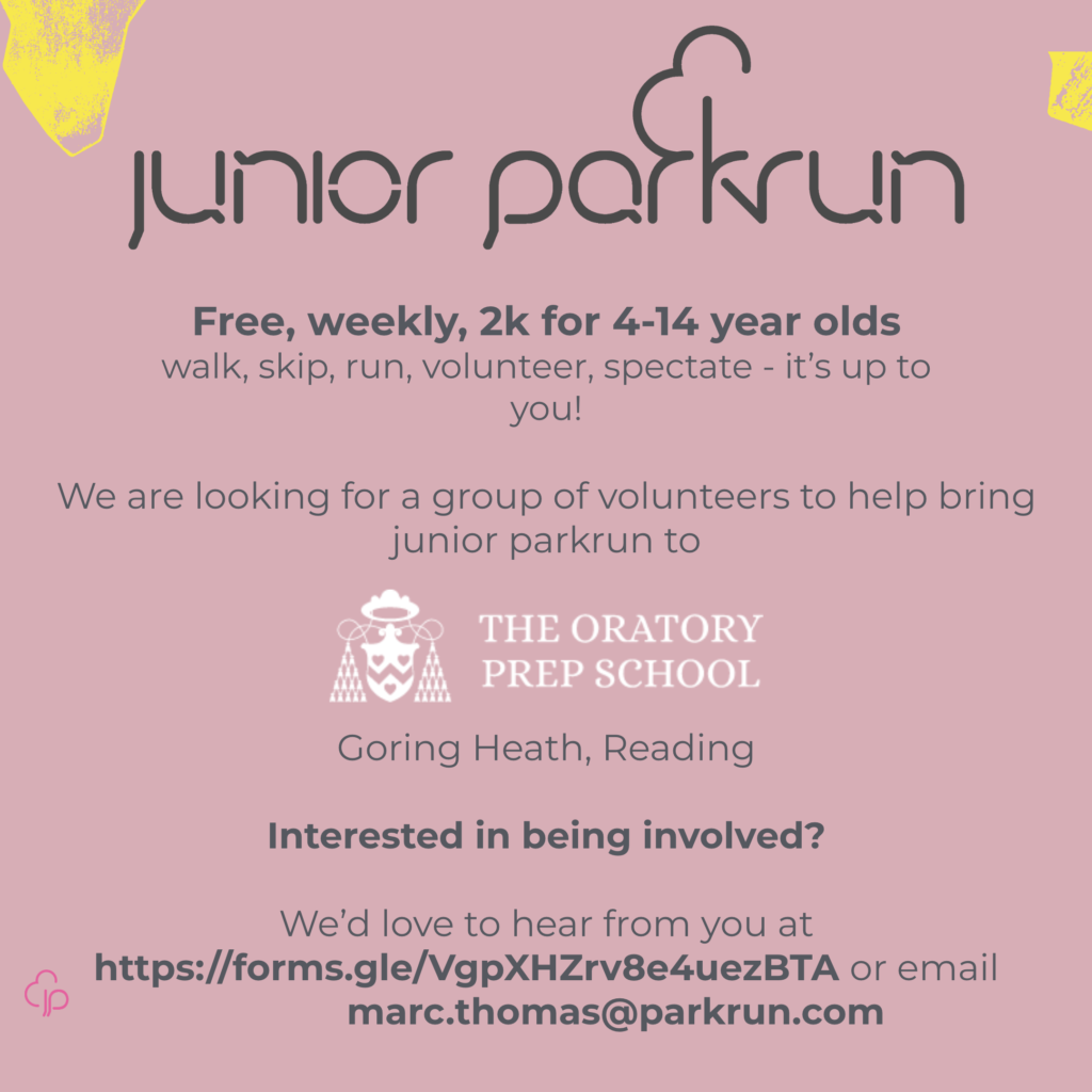 If you would like to help launch Junior Park Run at The Oratory Prep School, please sign up using the link below or email marc.thomas@parkrun.com